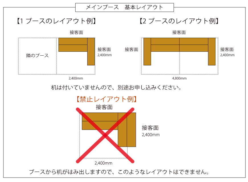 - ●ブースからのはみ出しを厳しく禁止致します。