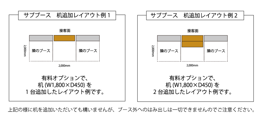 - ●メインブースとサブブースを併設することはできません。また、出品者様同士でメインブースとサブブースを隣接させることもできません。
