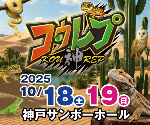 いつもご支援を賜り、誠にありがとうございます。このたび、保健所への登録名称およびホームページの名称を変更し、「神戸レプタイルズワールド」から「コウレプ」へと改名いたしました。ただし、動物取扱責任者の責任者名などの変更はございません。